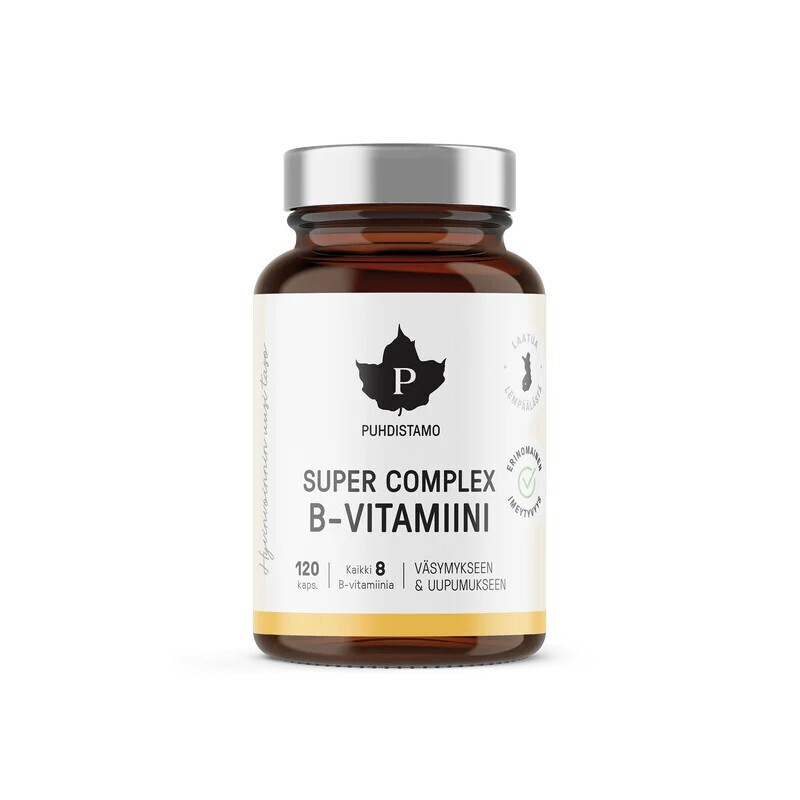 Super Complex B Vitamin is a strong and unique combination of effectively absorbed, active forms of B vitamins. It contains all eight forms of B vitamins in the same capsule! For example, B2, B3, B5, B6, and B9 vitamins help reduce tiredness and fatigue.