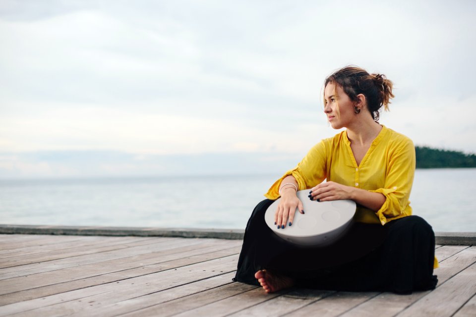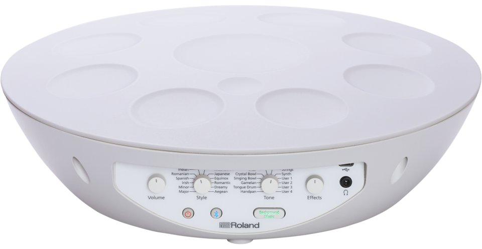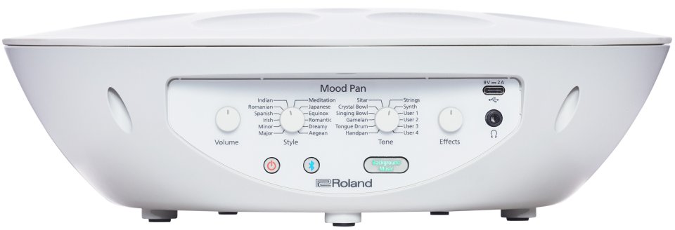 The Roland Mood Pan is an electronic hand percussion instrument designed for easy and intuitive music-making, even without prior experience. It lets you create calming and diverse soundscapes right in your lap by tapping its touch-sensitive pads. Combining the vibe of traditional acoustic handpans with electronic versatility, the Mood Pan allows you to explore various tones and scales effortlessly.