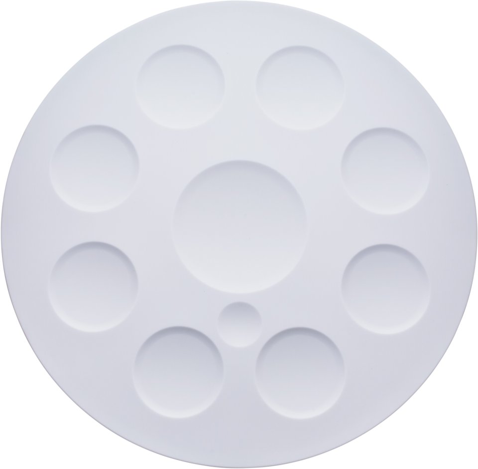 The Mood Pan runs on six AA batteries or a USB-C power source. Battery life is about 4 hours with alkaline batteries and approximately 5 hours with Ni-MH batteries during continuous use. It measures 316 mm in diameter, 94 mm in height, and weighs 2,4 kg. Built-in speakers deliver a rich and versatile sound experience.