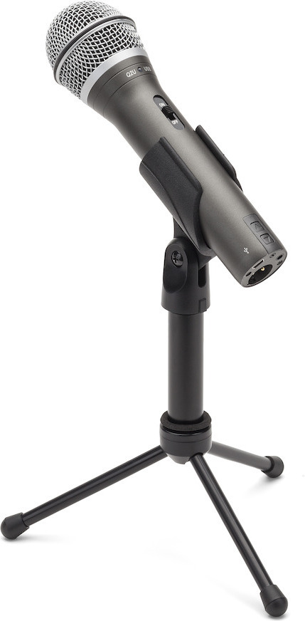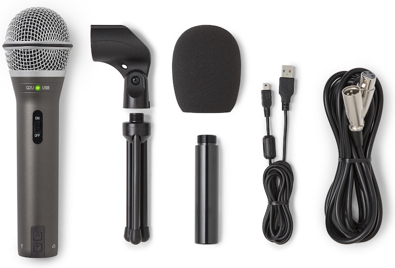 The Samson Q2U combines analog technology with digital functionality. The microphone features both USB and XLR output connectors, making it easy to connect to a variety of devices. The package includes a microphone clip, windscreen, tripod desktop stand, as well as XLR and USB cables. The Q2U is a high-quality yet very budget-friendly home office/podcast package that delivers professional sound effortlessly. The microphone also has a 3.5mm headphone output for monitoring.