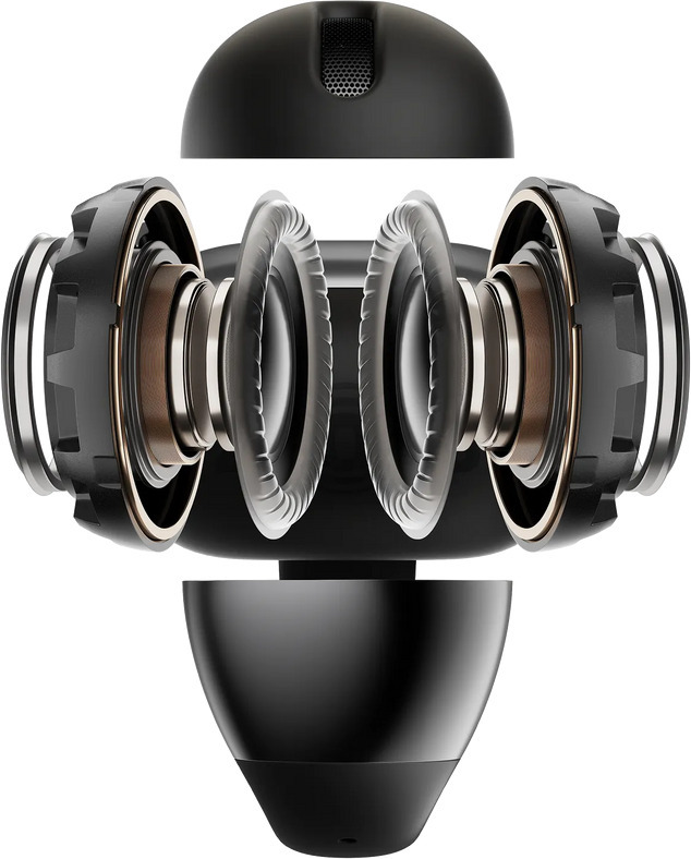 OpenDots ONE uses Bassphere technology to pack two round speakers into a stylish, spherical module. This design delivers powerful, low-frequency sounds while keeping the earbuds compact and minimizing sound leakage.