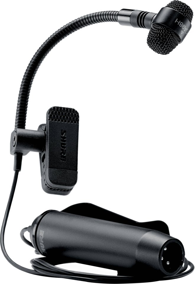 The PGA98H, designed for wind instruments, is a welcome addition to the Shure microphone family. This professional-grade gooseneck microphone is tailored for wind instruments. In addition, it is excellent for percussion and acoustic instruments. The polar pattern remains consistent across the entire frequency range. Thanks to this and the cardioid polar pattern, the microphone is easy to control and has a large rejection distance. The microphone is mounted with a sturdy and padded clip. The robust gooseneck stays firmly in place after positioning. The PGA98H is available in a wireless-compatible version PGA98H-TQG (without preamp) and an XLR connector version PGA98H-XLR. Whichever version you choose, it performs well on stage and in the studio. The delivery includes a zippered storage pouch. Other accessories vary by model.