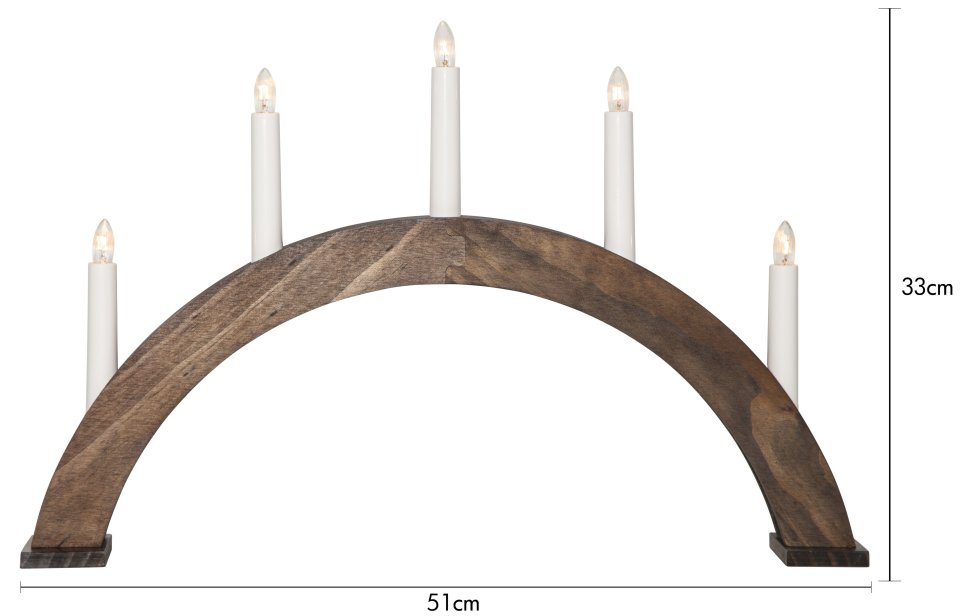 The candle holder features five replaceable E10 bulbs that provide soft, pleasant lighting. A 180 cm long white cord with a switch makes it easy to use. Made from wood and plastic, it carries an FSC certification, ensuring responsible sourcing of materials. This product is designed for indoor use (IP20).