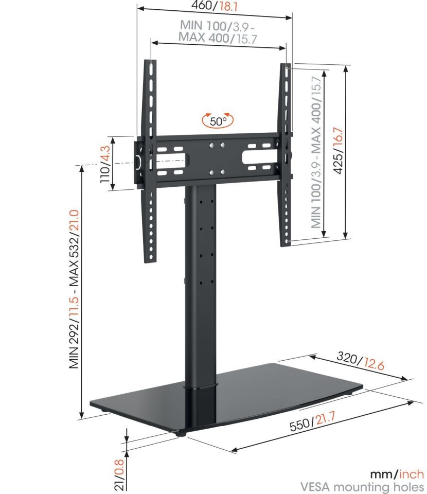 The stand allows you to swivel the TV up to 50 degrees, so you can always find the best viewing angle no matter where you sit. No need to rearrange furniture or sit uncomfortably.