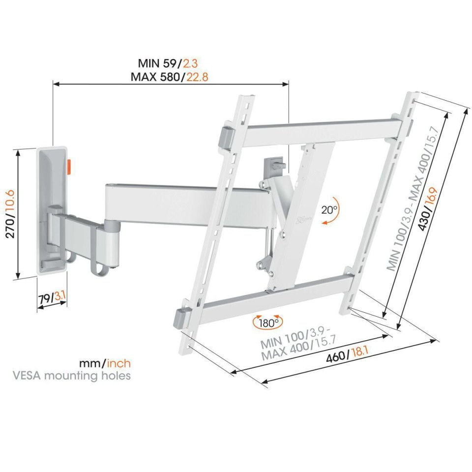 Up to 180° swivel and 20° tilt make it easy to find the ideal angle. Long 58 cm arms provide maximum flexibility for the TV to move freely, so you can enjoy your favorite shows from the optimal angle no matter where you sit in the room.