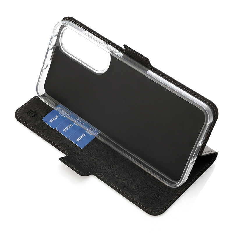 The Wave Book Case is a black protective cover made from durable materials, designed specifically for the OnePlus Nord 5. It combines reliable protection with practical features and a clean, refined look.