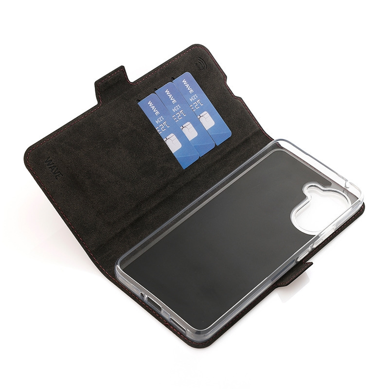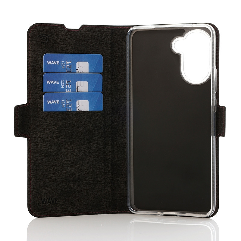 The Wave Book Case is a black protective cover made from durable materials, designed specifically for the OnePlus Nord CE5. It combines reliable protection with practical features and a sleek design.