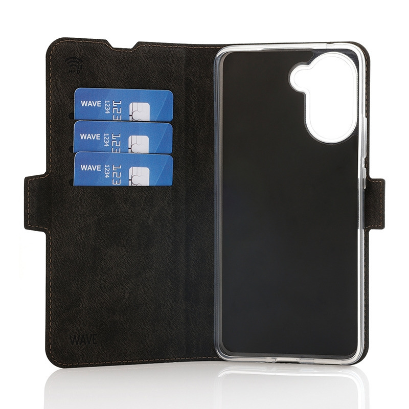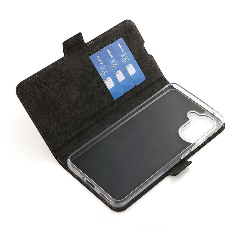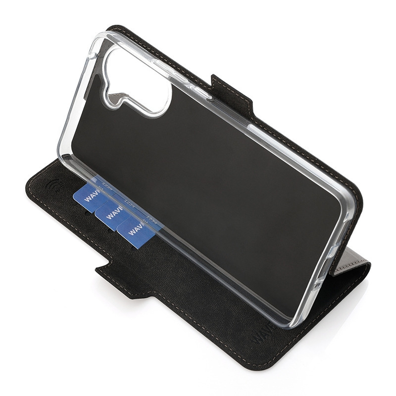The Wave Book Case is a black protective cover made from durable materials, designed specifically for the OnePlus Nord CE5. It combines reliable protection with practical features and a sleek design.