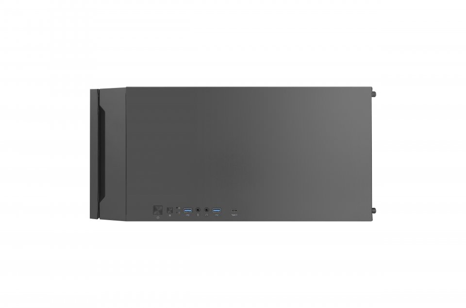 Kotelon yläosassa on kätevästi sijoitettu I/O-paneeli, jossa on kaksi USB 3.2 Gen 1 (3.1 Gen 1) A-tyypin porttia, yksi USB 3.2 Gen 2 (3.1 Gen 2) C-tyypin portti sekä ääniliitännät. Lisäksi mukana on tuulettimien nopeuden säätöpainike, jolla voit valita korkean tai matalan nopeustilan tuulettimille.