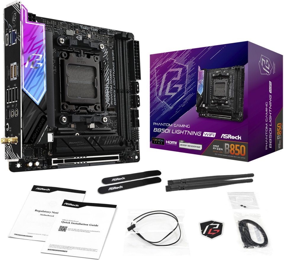 Asrock Phantom Gaming B850I Lightning WiFi on kompakti ja tehokas emolevy, joka on suunniteltu erityisesti AMD:n prosessoreille. Tämä Mini ITX -muototekijällä varustettu emolevy tukee AM5-pistoketta, mikä tarkoittaa, että voit käyttää uusimpia AMD Ryzen 7000, 8000 ja 9000 -sarjan prosessoreita. Sen huipputeknologiset ominaisuudet tekevät siitä erinomaisen valinnan pelaamiseen ja vaativiin sovelluksiin.