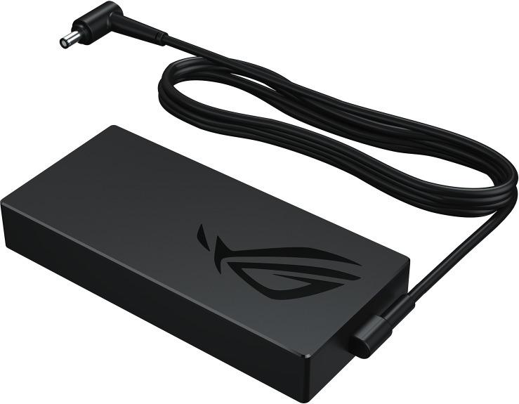 Tehokasta latausta ROG 240W DC -laturilla Laturi on niin kompakti, että se kulkee vaivattomasti minne tahansa. Tästä huolimatta laturi suoriutuu nopeasti yhteensopivien ASUS- ja ROG-pelikannettavien lataamisesta vakiomallisen 6PHI-liitännän kautta.