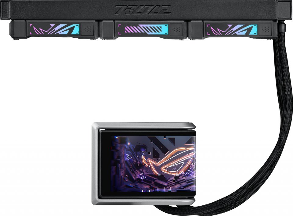 Jäähdytysjärjestelmän sydän on Asetek Gen8 V2 -pumppu, joka yhdessä kolmen 120 mm ROG ARGB -tuulettimen kanssa huolehtii tehokkaasta lämmönsiirrosta. Tuulettimet pyörivät 600–2200 rpm nopeudella ja tuottavat ilmavirtaa jopa 56,66 cfm, pitäen prosessorin lämpötilat hallinnassa myös raskaassa käytössä.