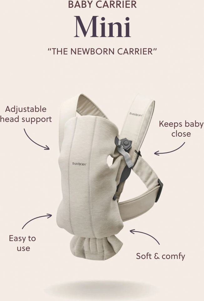 BabyBjörn Mini on pieni, helppokäyttöinen ja erittäin pehmyt kantoreppu vastasyntyneelle. Kantoreppu on helposti puettavissa ilman apua ja koko etupaneeli on helppo avata nostaessasi nukkumassa olevan vauvan. Pehmeät, joustavat ja huolellisesti suunnitellut kankaat tekevät kantorepusta tyköistuvan ja viihtyisän paikan vastasyntyneelle. Vauva matkustaa kantorepun kyydissä ergonomisesti hyvässä sammakkoasennossa. Kantorepulla voi kantaa lasta kantajan etupuolella. Lapsen kasvot tulee olla aina kantajaan päin, kunnes hän on oppinut kannattelemaan itse päätään. Kasvot menosuuntaan voidaan käyttää noin yli 5kk -ikäisillä pienokaisilla.