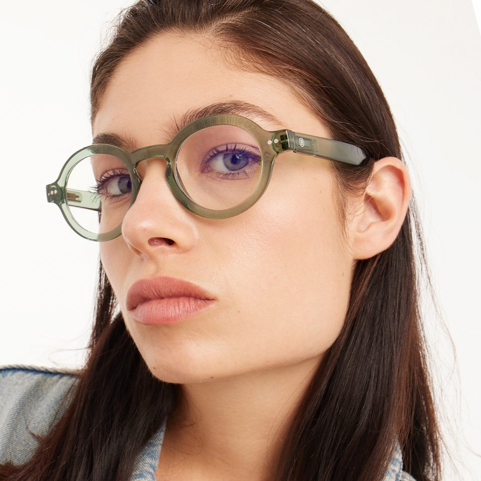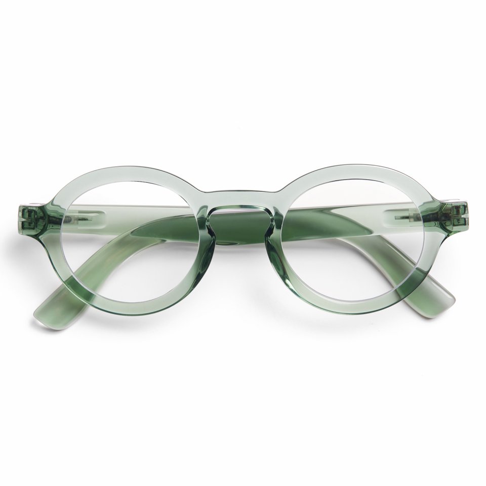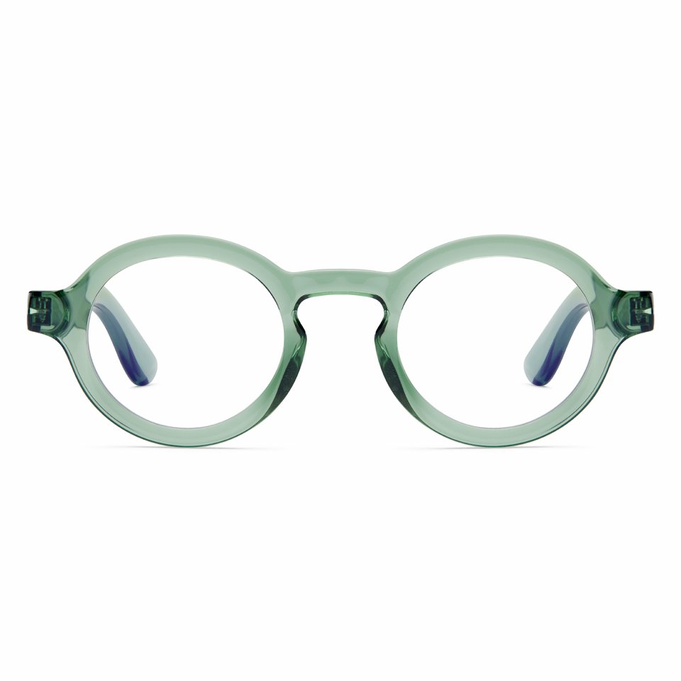 Viherä kiiltävä kehys antaa laseille modernin ja neutraalin ilmeen, joka sopii monenlaiseen pukeutumiseen ja tilanteeseen ilman liiallista huomiota.