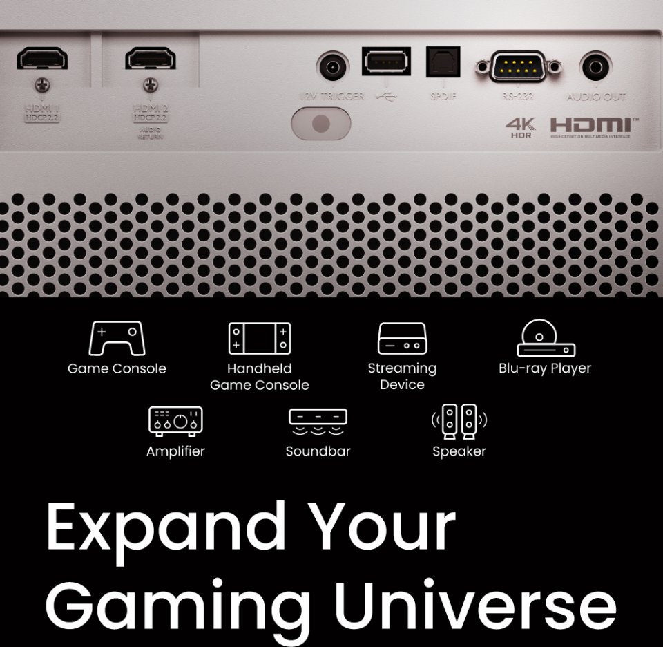 Tämä laite ei ole vain peliprojektori, vaan se muuttaa tilasi kokonaisvaltaiseksi viihdekeskukseksi. Nauti rajattomasta viihteestä Google-sertifioidun Android TV:n avulla. Lisäksi voit helposti jakaa sisältöä iPhone-, iPad-, Mac-, Android- ja PC-laitteistasi AirPlayn ja Chromecastin kautta.