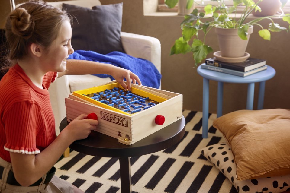 Liikuta lautaa vääntämällä nuppeja ja pujottele puisen labyrintin läpi metallikuulien kanssa. Tavoitteena on ohittaa laudassa olevia reikiä ja välttää samalla haamuja, aivan kuten alkuperäisessä PAC-MAN-pelissä. Tämä fyysinen versio tuo aivan uuden ulottuvuuden tuttuun pelimaailmaan ja haastaa sekä hienomotoriset taidot että strategisen ajattelun.