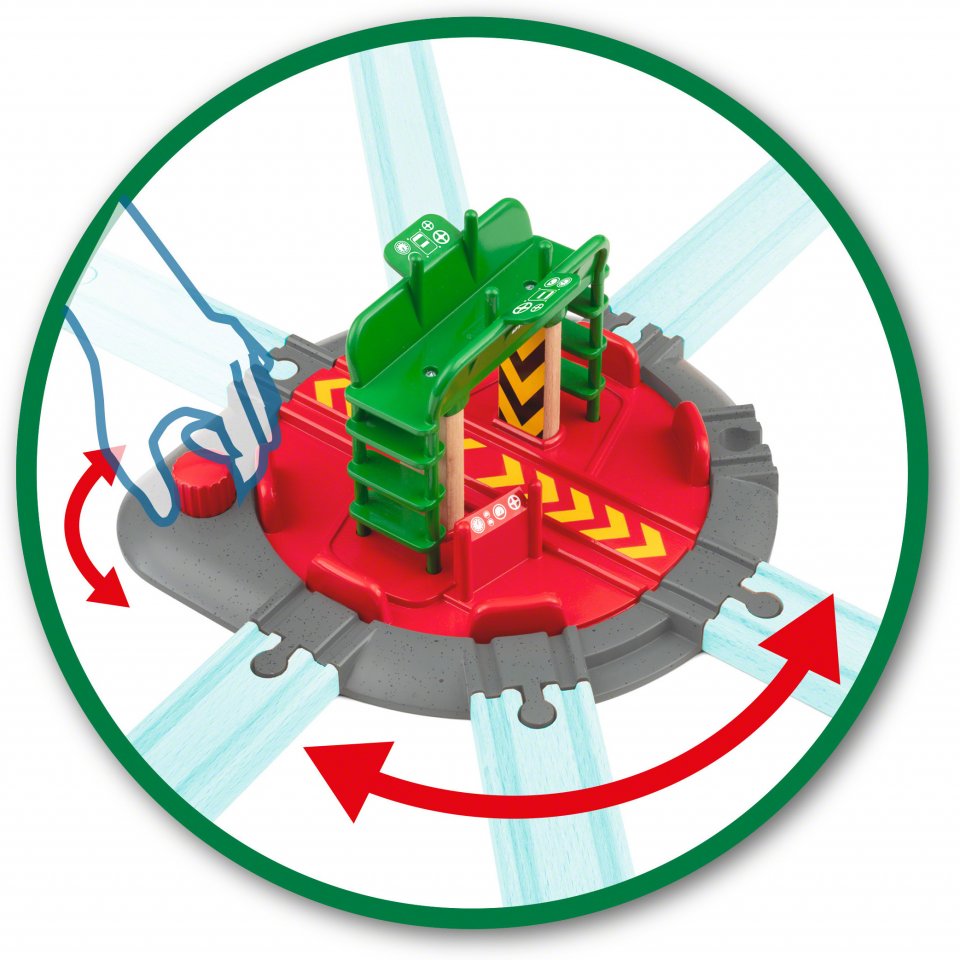 Seitsemän eri raideliitäntää sisältävästä kääntöpöydästä ja hahmosta 33476 tulee kaikkien BRIO World -rautateiden keskus. Kääntöpöydälle mahtuu mikä tahansa BRIO World -veturi. Kun käännät punaista nuppia, näet koko keskiosan pyörivän ja napsahtavan paikoilleen. Sisältää myös insinöörihahmon, joka hoitaa kääntöpöytää kaksitasoiselta asemaltaan..