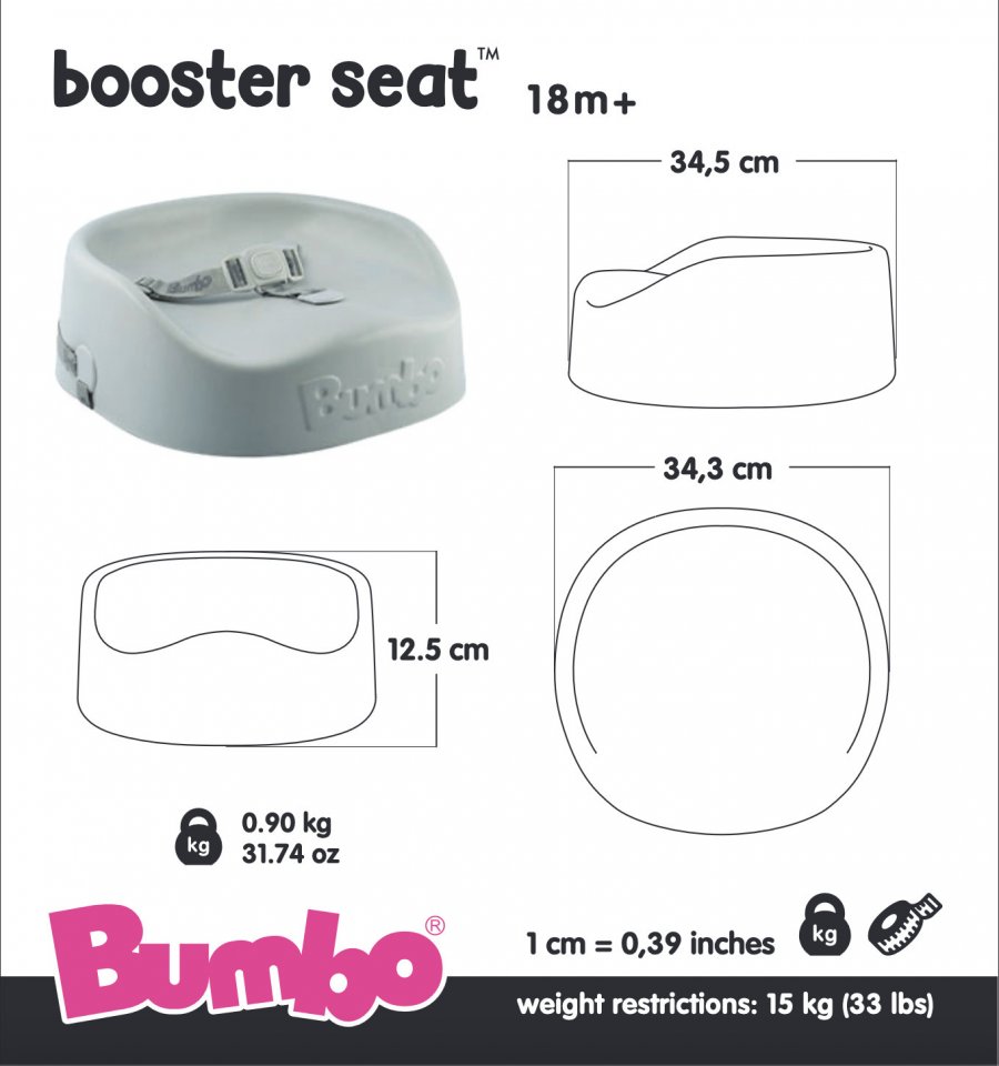 Pehmeällä ja mukavalla Bumbo Booster Seat -korokeistuimella taaperosi voi istua mukavasti ruokapöydän ääressä. Tämä yli 18 kk ikäisille sopiva korokeistuin on kauttaaltaan pehmeä eikä naarmuta huonekalujesi pintoja. Voit helposti ottaa korokeistuimen mukaan ravintolaan tai vierailuille sukulaisten ja ystävien luo, sillä se on kevyt ja helppo kantaa. Puhdista Bumbo-korokeistuin kostealla liinalla ja miedolla pesuaineella tarpeen mukaan.