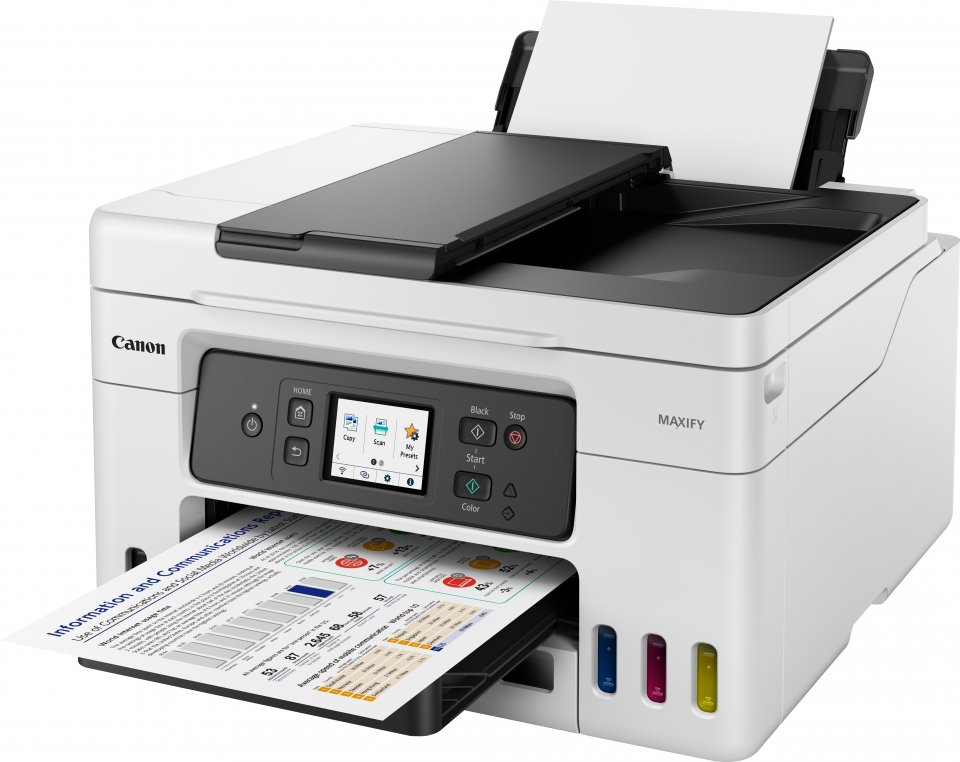 Canon Maxify GX4050 on monitoimitulostin, joka sopii erityisesti kotitoimistoihin ja pienyritysten tarpeisiin. Se yhdistää neljä toimintoa: tulostuksen, kopioinnin, skannauksen ja faksauksen. Täytettävien mustesäiliöiden ansiosta tulostuskustannukset pysyvät alhaisina, ja tulostin pystyy käsittelemään suuria määriä asiakirjoja tehokkaasti. Laite tukee langatonta Wi-Fi-yhteyttä sekä Ethernet-verkkoa, joten sen liittäminen verkkoon on joustavaa.