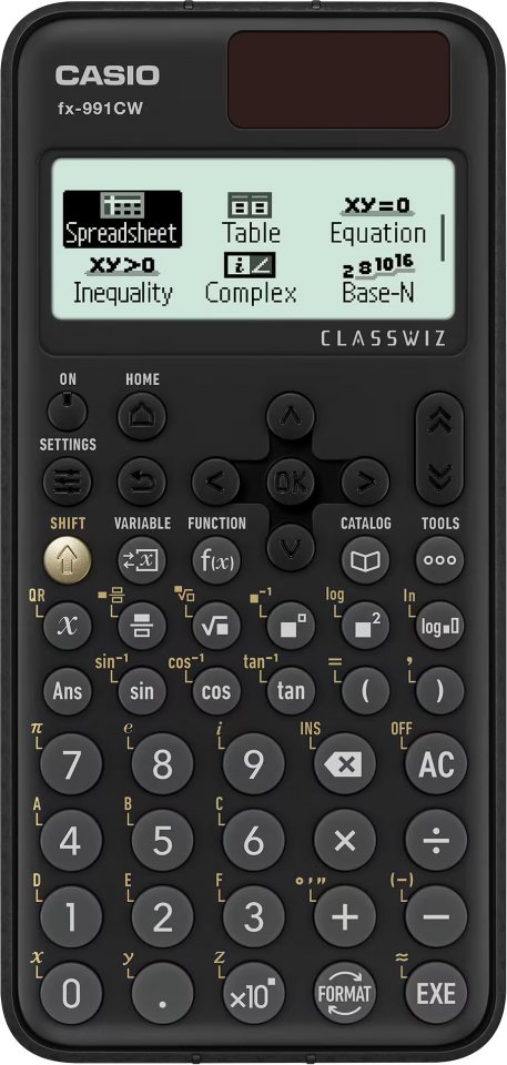 • Casio FX-991CW toimii pohjimmiltaan samalla tavalla kuin FX-82CW ja 85CW plus, mutta siinä on melkein tuplasti enemmän toimintoja. Laskimen taulukkolaskentaohjelma mahdollistaa taulukkolaskennat. QR-kooditoiminnon ansiosta näet tulokset suoraan puhelimelta tai tabletilta. Laskin on muodoltaan ohut ja pyöristetty, ja se muistuttaa nykypäivän älypuhelimia. Painikkeet ja navigointi on suunniteltu helpottamaan käyttöä. Casio FX-991CW ClassWiz toimii hyvin myös etäopiskelussa. Laskimen voi yhdistää selaimen kautta oppimispalveluihin, kuten ClassPad.