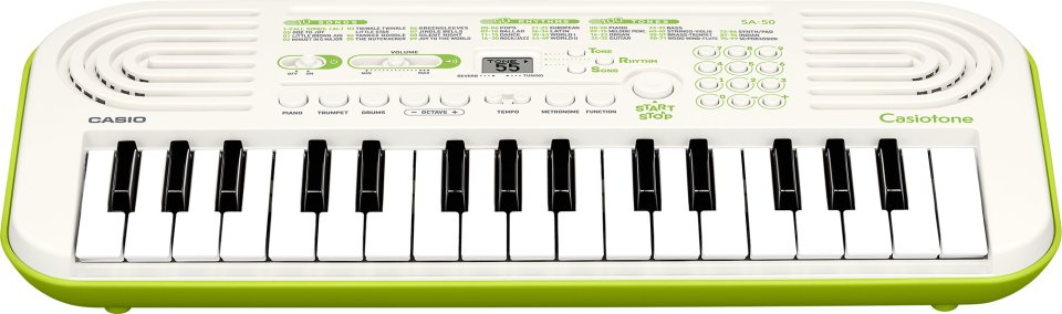 Casio SA-50 on kompaktne, kuid vastupidav klaviatuur, mis paistab silma mini klahvide paigutusega. Komplektis on 10 sisaldatud laulu, mis muudavad meloodiate harjutamise lihtsaks. See instrument on ideaalne esimeseks klaviatuuriks pereliikmetele.