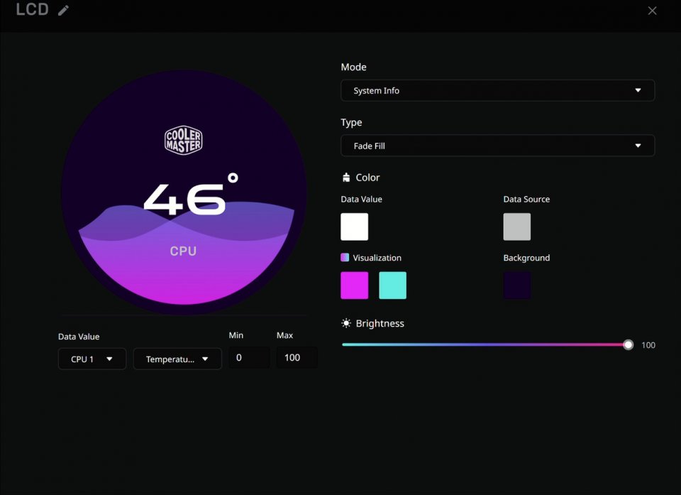 2,1 tuuman LCD-näyttö – Täysin mukautettavissa Cooler Master MasterCTRL:n kautta.