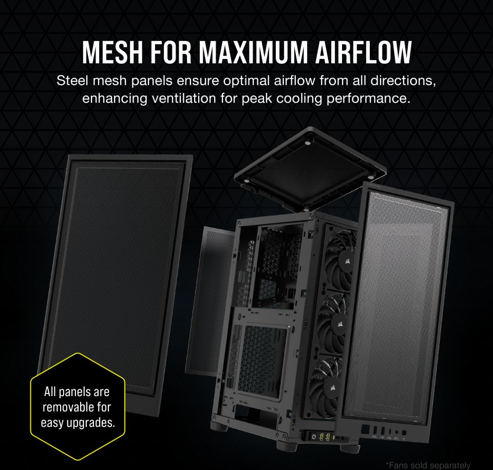 • Irrotettavat etu-, sivu ja takaverkkopaneelit huolehtivat tehokkaasti ilmanvaihdosta lähes joka puolelta järjestelmää parhaan mahdollisen jäähdytysvaikutuksen aikaansaamiseksi