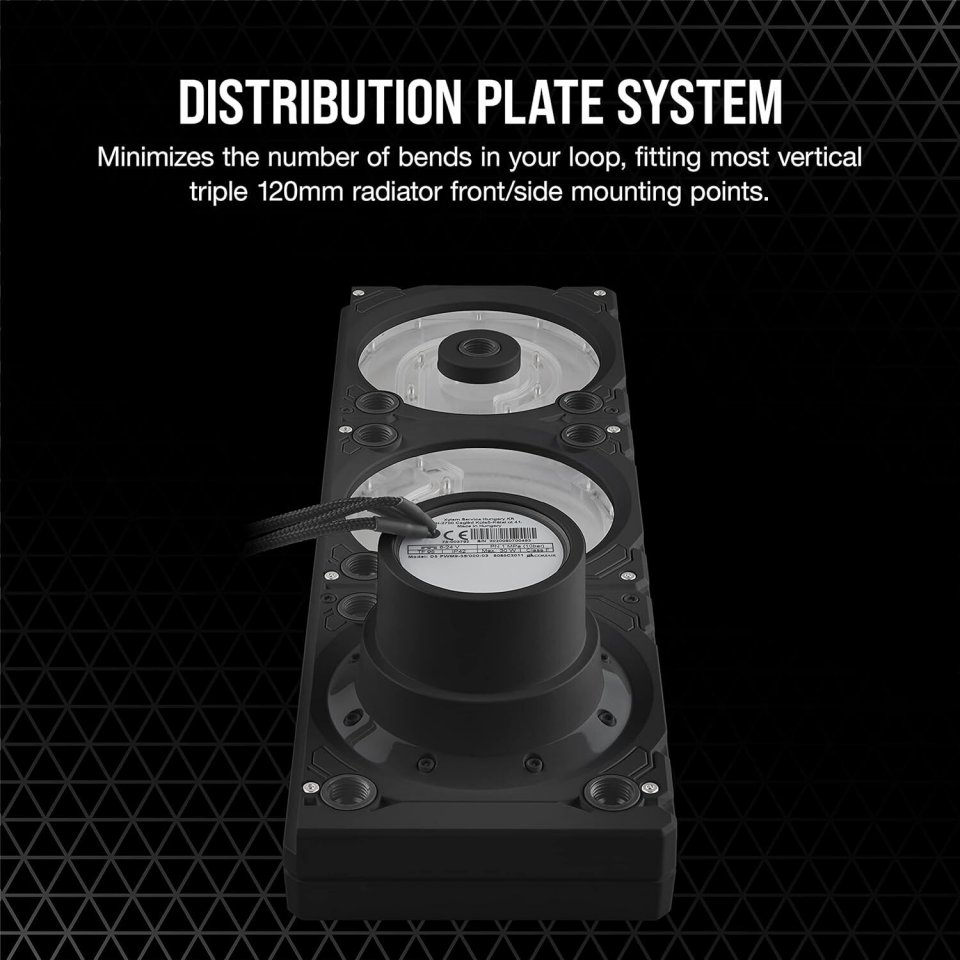 CORSAIR Hydro X Series XD7 RGB -pumppu/säiliö -yhdistelmässä on universaali 360 mm:n distribution plate -jakelujärjestelmä, jossa on integroitu D5 PWM-pumppu erittäin vaativia custom-loop -jäähdytysjärjestelmiä varten. XD7 RGB kokoaa loopin yhteen ja korostaa sen estetiikkaa ainutlaatuisella muotoilulla, joka sopii monenlaisiin koteloihin.