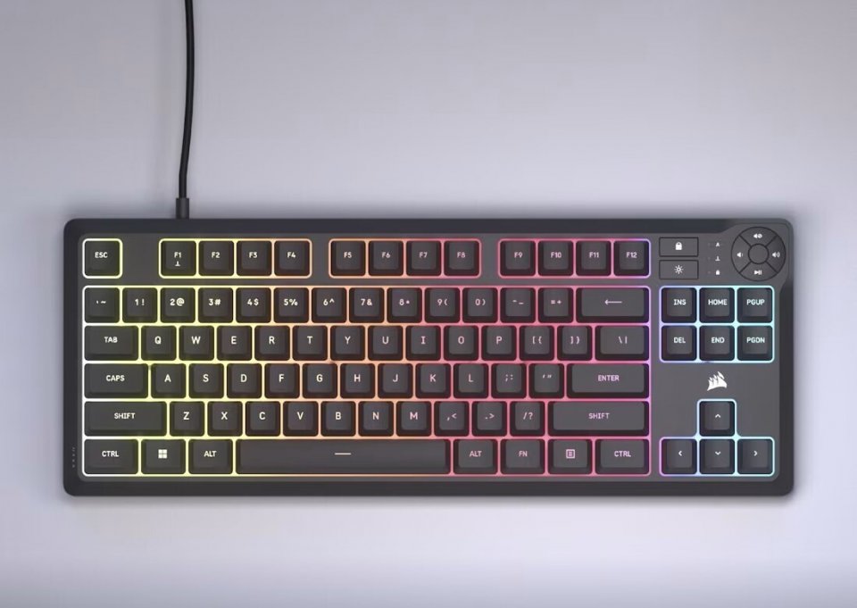 Corsair K55 Core TKL on suunniteltu tilaa säästäväksi ja kestämään pelikäytön vaatimuksia