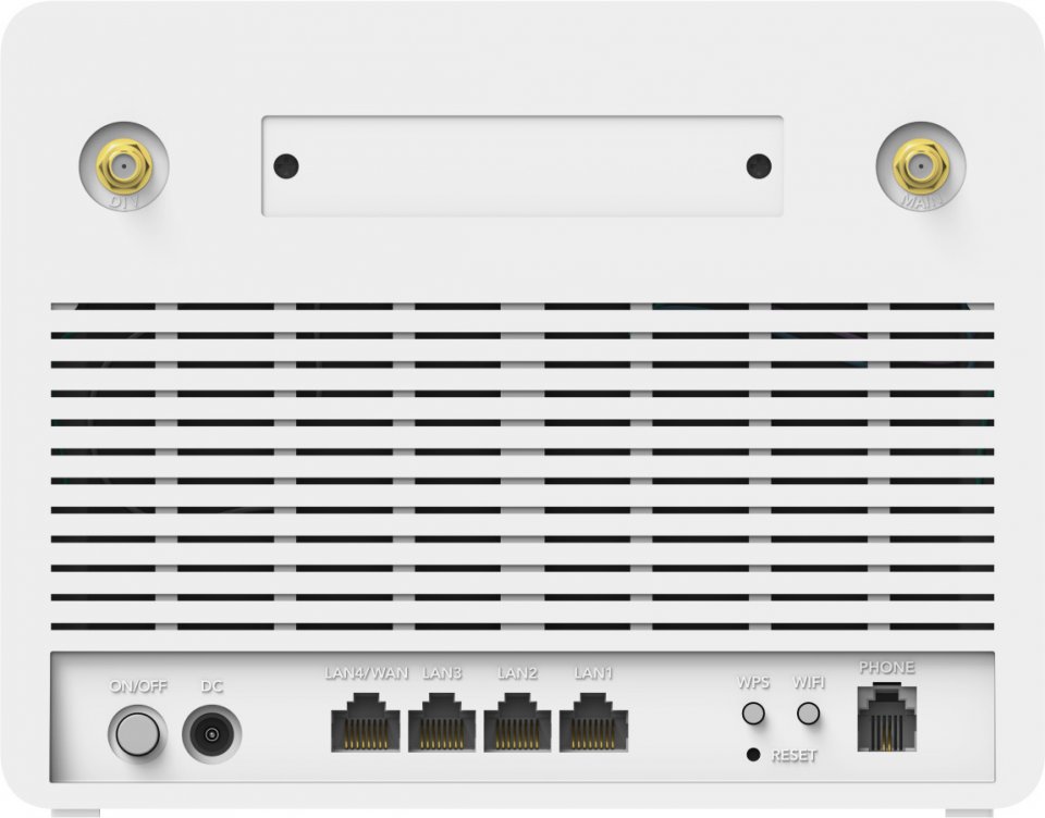 • Liitännät: 3 x Gigabit LAN RJ-45, 1 x Gigabit LAN/WAN RJ-45 -porttia, 1 x RJ11-liitäntä
