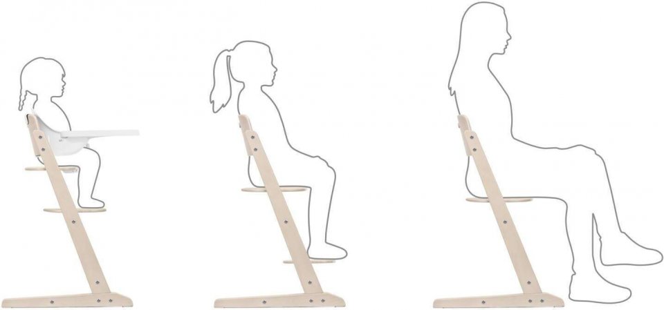 Syöttötuoli tarjoaa kolme eri käyttötapaa, jotka mukautuvat lapsen tarpeiden mukaan. Baby Set -osan avulla pienet lapset voivat istua pöydän ääressä jo kuuden kuukauden iästä lähtien ja osallistua perheen yhteisiin hetkiin. Tuolin tarjotin on irrotettava ja napsahtaa helposti paikalleen, joten se tarjoaa lapselle paikan syömiseen tai leikkimiseen. Jalkatuki on säädettävä, mikä lisää istumismukavuutta eri ikäisille käyttäjille.