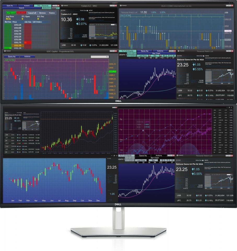 Työpöytä pysyy siistinä yhden USB-C -kaapelin kytkennän avulla. Samalla kannettavasi latautuu jopa 90W teholla. Picture-by-Picture- sekä Picture-in-Picture- toiminnallisuus sisäänrakennetun KVM-kytkimen kanssa mahdollistaa kahden eri tietokoneen käytön samalta näytöltä yhtä näppäimistöä ja hiirtä hyödyntäen.