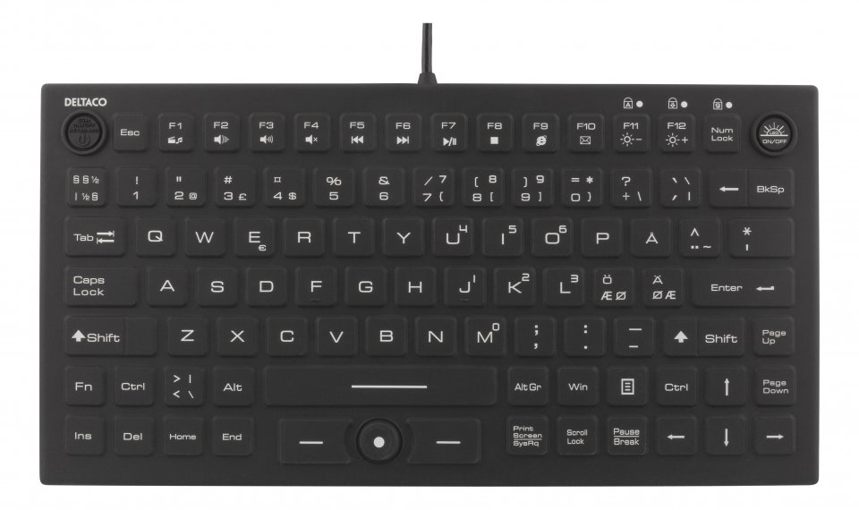 Deltaco TB-509 on vesitiivis silikonista valmistettu näppäimistö, joka on suunniteltu kestämään haastavia käyttöympäristöjä, joissa vesi ja pöly voivat olla ongelma. IP68-luokituksen ansiosta näppäimistö kestää sekä pölyä että veteen upottamista, joten se sopii hyvin esimerkiksi teollisuus- tai ulkokäyttöön. Kompakti koko ja pohjoismainen QWERTY-asettelu tekevät siitä käytännöllisen valinnan monenlaisille käyttäjille.