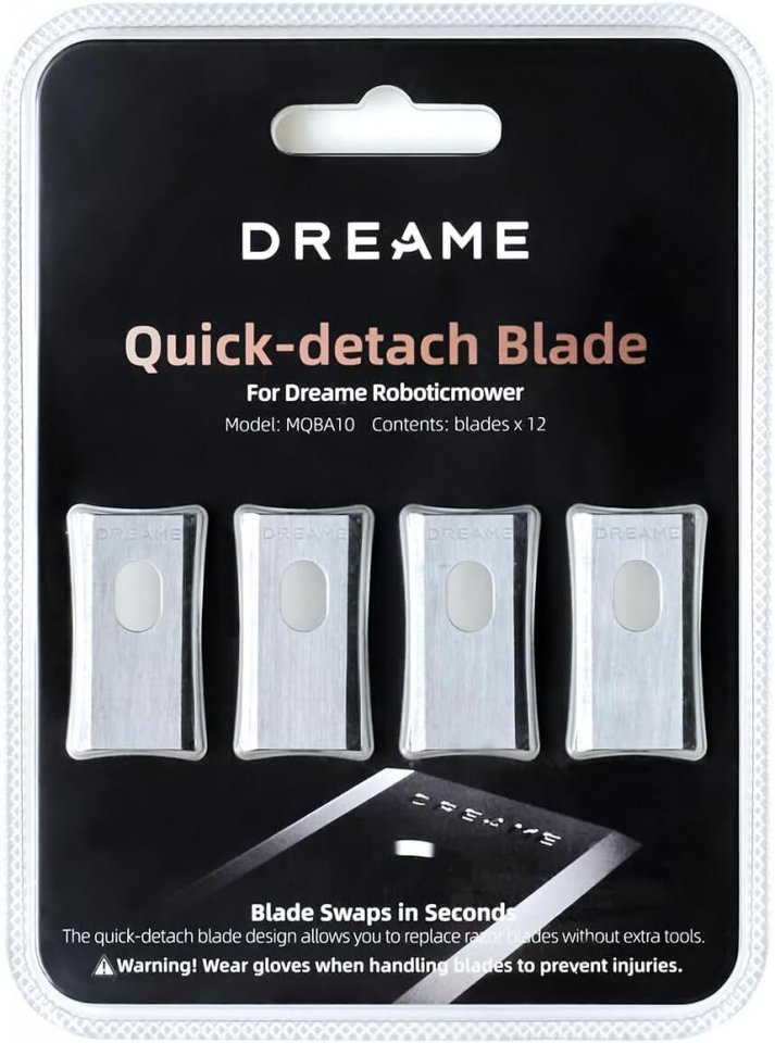 Dreame A1/A1 Pro/A2 Blade Kit -varaterät robottiruohonleikkurille. Paketissa yhteensä 12 varaterää. Terien vaihto on helppoa, eikä siihen tarvita erillisiä työkaluja.