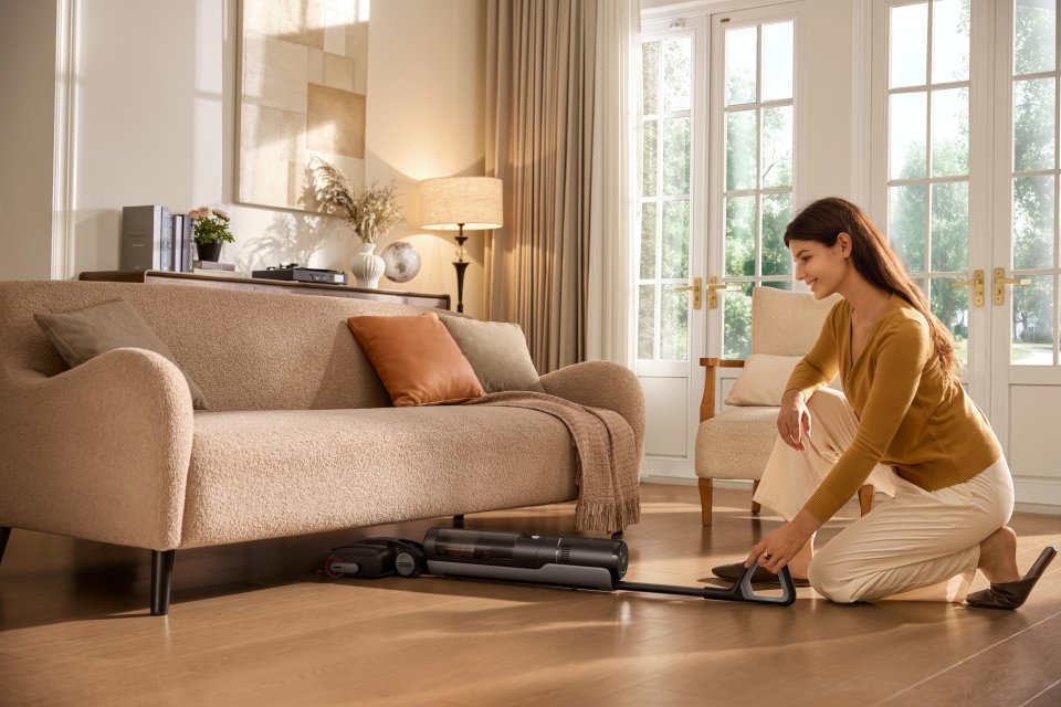 Dreame H15S:n tekoälyavusteinen GapFreeTM DescendReach -robottivarsi on suunniteltu erityisesti reunojen ja kulmien syväpuhdistukseen. Se varmistaa kolminkertaisen puhdistuksen ilman, että eteen jää välitahroja. Imurin litteä 180 asteen rakenne mahdollistaa liikkumisen jopa 14 cm matalien kalusteiden, kuten sänkyjen ja sohvien, alla. Näin lattianhoito ulottuu helposti vaikeasti tavoitettaviin paikkoihin.