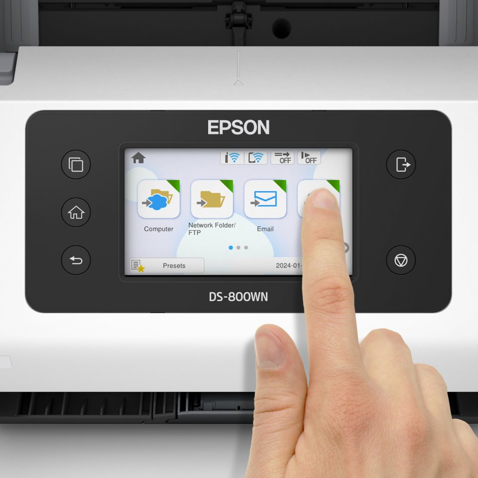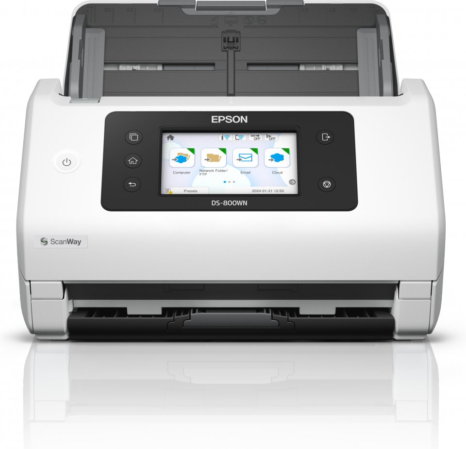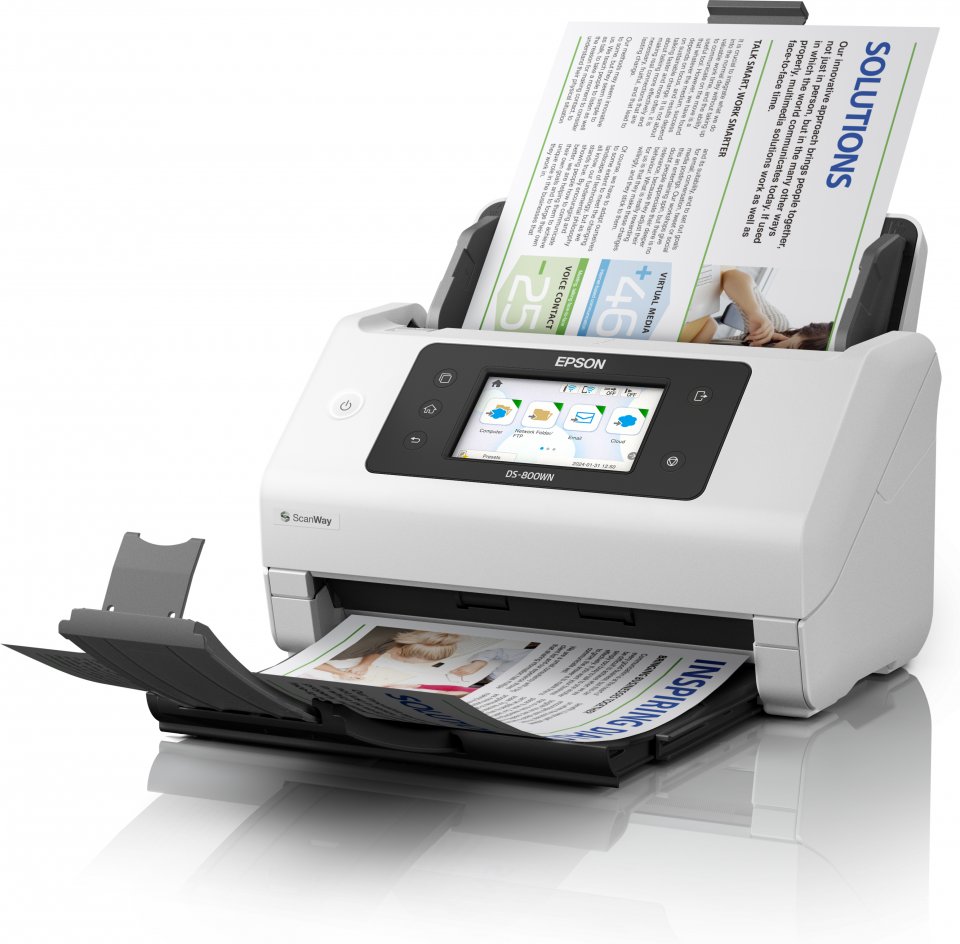 Epson WorkForce DS-800WN on nopea skanneri integroidulla Wi-Fi- ja verkkoyhteydellä sekä avoimella järjestelmäalustalla. Tämä yritysskanneri tarjoaa kattavan ratkaisun tehokkaaseen, luotettavaan, turvalliseen ja helppokäyttöiseen asiakirjojen skannaukseen. Edistyksellisten ominaisuuksien, saumattoman liittämisen (kolmansien osapuolten ratkaisuilla) sekä helppokäyttöisen käyttöliittymän ansiosta DS-800WN sopii erinomaisesti kaikenkokoisiin yrityksiin.