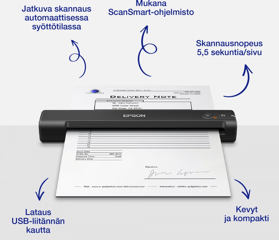• Sisältyvä ohjelmisto: Epson ScanSmart