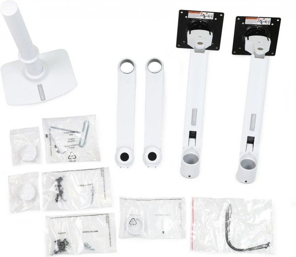 • Paketti sisältää: kiinnike, pöytäkiinnike, läpivientikiinnitys, tolppa, 2 nivelvartta, 2 jatkovartta
