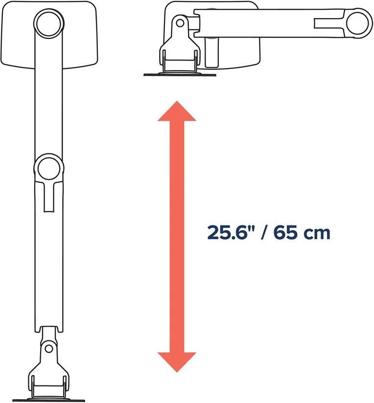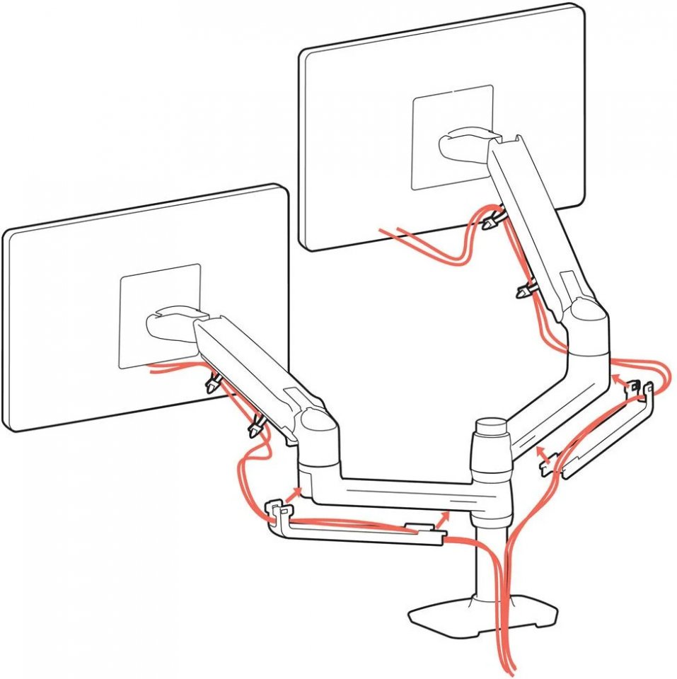 Paketti sisältää kaiken tarvittavan kiinnitykseen: kiinnikkeen, pöytäkiinnikkeen, läpivientiasennustarvikkeet, tolpan sekä säädettävät ja jatkoivarret. Näin voit valita useista asennustavoista työpöytäsi ja mieltymystesi mukaan.