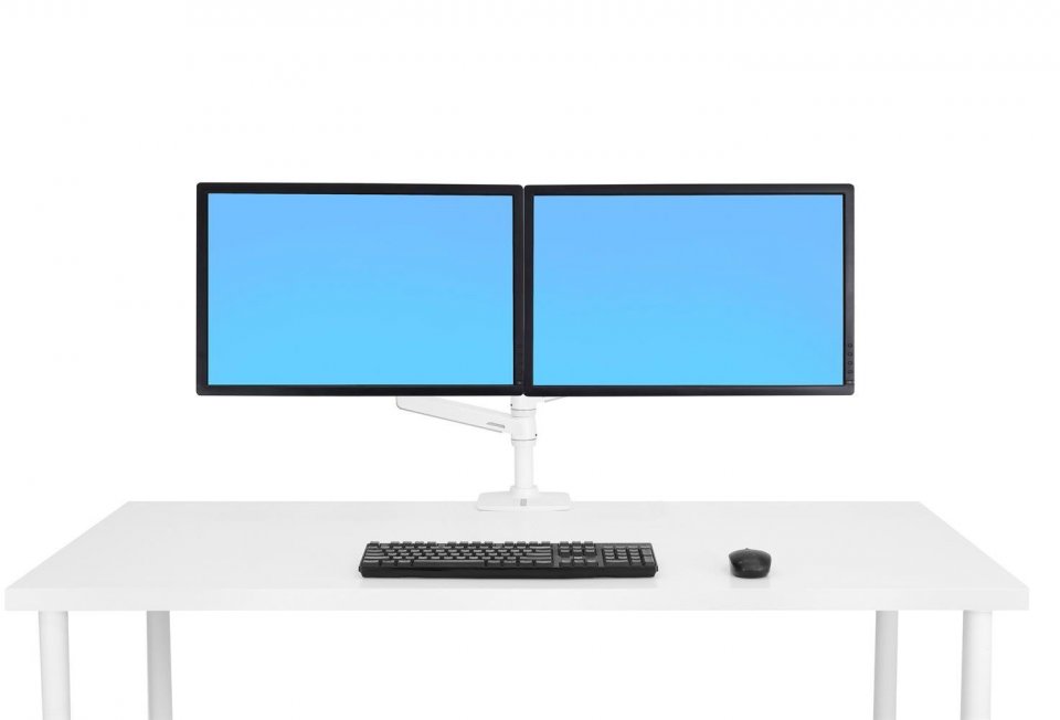 Tämä kaksinäyttöteline antaa sinulle mahdollisuuden sijoittaa kaksi näyttöä juuri haluamallasi tavalla – päällekkäin, vierekkäin tai muulla työtilaan sopivalla tavalla. Se tukee enintään 24 tuuman näyttöjä ja kestää yhteensä jopa 18,1 kg painon, mikä tekee siitä monipuolisen ratkaisun työpöydällesi.