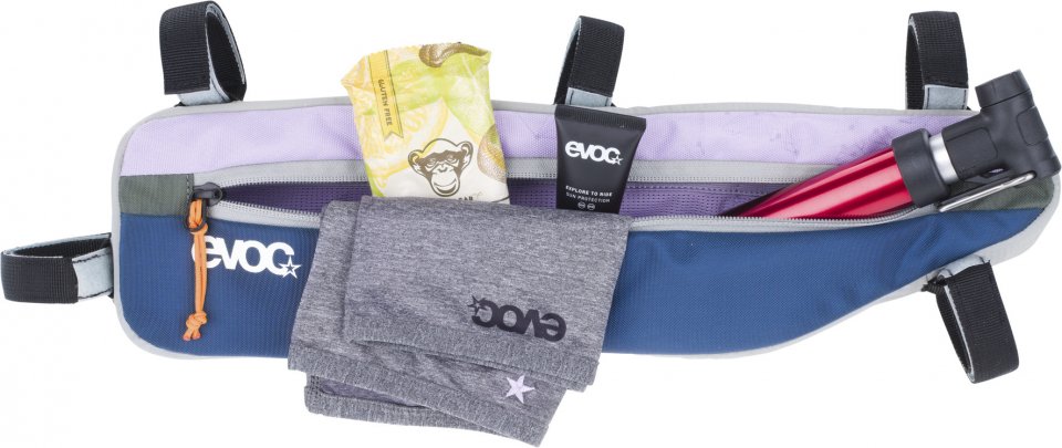 Evoc Frame Pack kiinnittyy pyörän runkoon tarrakiinnityshihnoilla, jotka pitävät laukun tukevasti paikallaan ilman, että se heiluu tai häiritsee ajoa. Vetoketjullinen tasku suojaa tavaroitasi pölyltä ja roiskeilta ajon aikana.