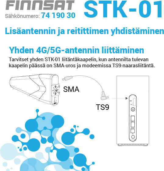 • Yhteensopiva 5G- ja 4G-reitittimien kanssa, joissa lisäantenni yhdistetään TS9-urosliittimellä.