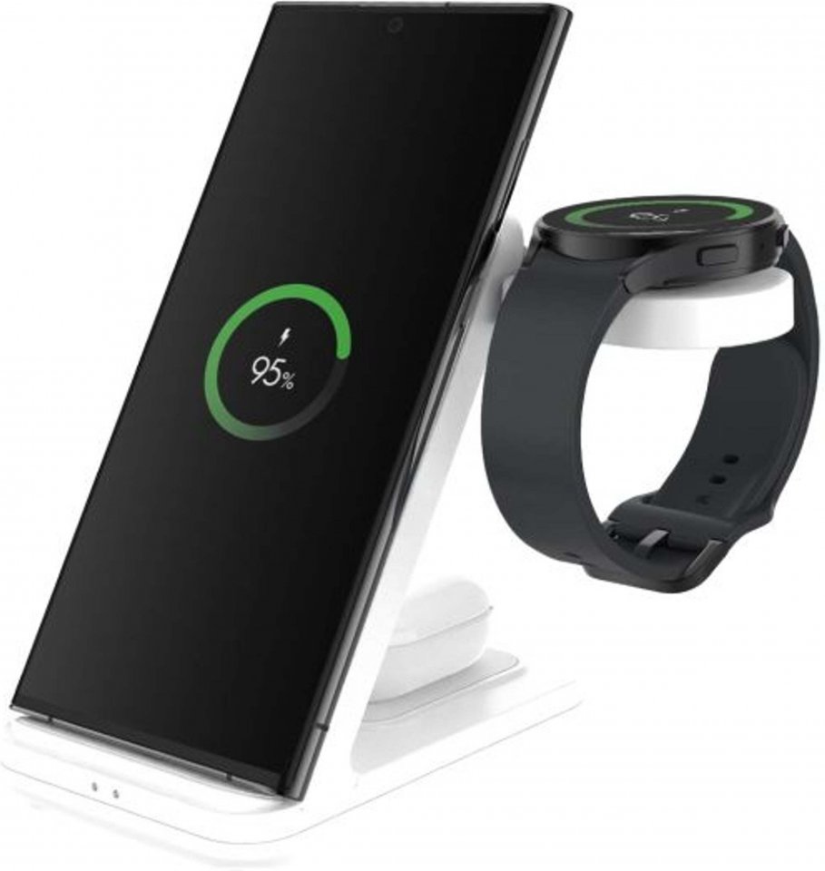 Latausasemassa on kolme erillistä latausaluetta, jotka mahdollistavat puhelimen, kellon ja kuulokkeiden lataamisen samanaikaisesti. Päälatauspinta tarjoaa jopa 15 W tehoa puhelimen lataamiseen, ja se toimii sekä pysty- että vaakasuunnassa. Jalustan pohjassa on toissijainen 5 W latauspinta, joka sopii langattomille kuulokkeille tai toiselle puhelimelle.