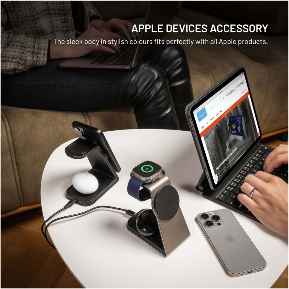 • 3-in-1-lataus: puhelimille, kuulokkeille ja Apple Watchille