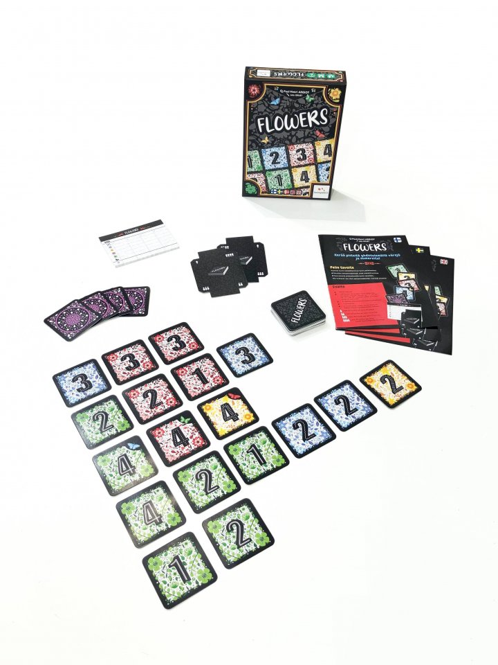 Asettele värikkäitä kukkia, rakenna upeita niittyjä ja kerää pisteitä ryhmittelemällä kortteja taitavasti. Flowers on kaunis ja oivaltava korttipeli, jossa jokainen päätös vaikuttaa lopputulokseen. Yhdistä värit, noudata asettamisvaatimuksia ja yritä välttää virheet – vain harkiten asetellut kukat pääsevät kukoistamaan! Kesämuunnelma tuo mukaan raikkaan lisätwistin ja mahdollistaa myös nautinnollisen yksinpelin.