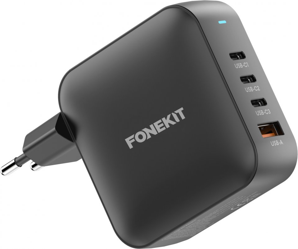 FoneKit GaN PD 165W -verkkovirtalaturi, USB-A + 3 x USB-C, musta