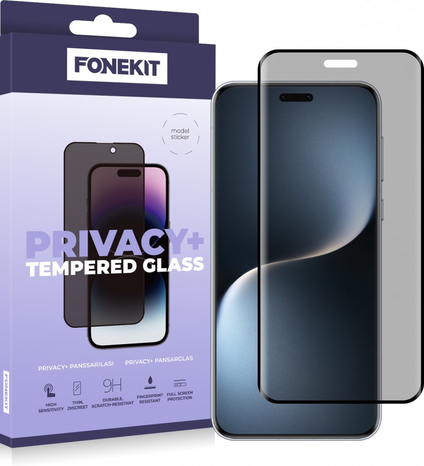 Suojaa puhelintasi sekä yksityisyyttäsi FoneKitin erinomaisella Privacy+ panssarilasilla. Aidosta karkaistusta lasista valmistettu panssarilasi suojaa puhelimesi näyttöä erittäin tehokkaasti iskuilta ja osumilta heikentämättä puhelimen käyttötuntumaa. Kirkas ja hyvin istuva lasi on miellyttävä käyttää. Pyöristetyt reunat tuntuvat sormissa miellyttävältä ja lasisuojan erikoispinnoite hylkii sormenjälkiä. Suojakalvon pinta on kulutusta kestävä, jolloin se ei naarmuunnu helposti.
