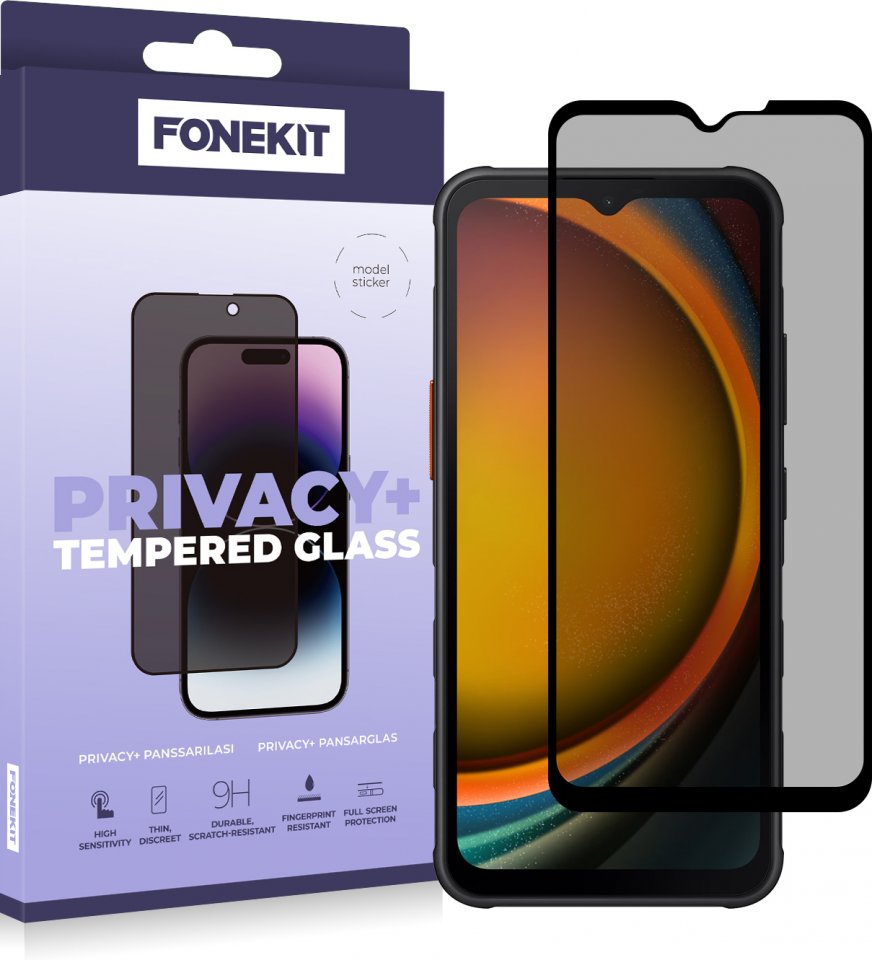 FoneKit Privacy+ Full Cover -panssarilasi, Samsung Galaxy Xcover7, musta