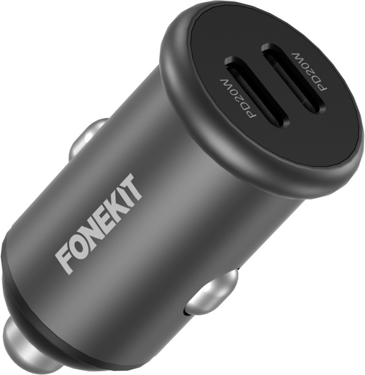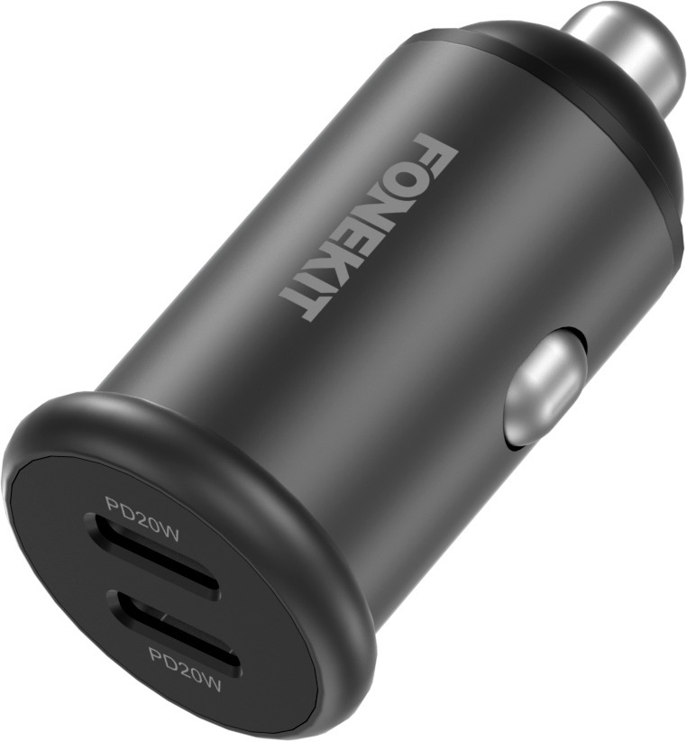 Erittäin pienikokoisesta FoneKit Travel 40W -autolaturista löytyy kaksi USB-C-porttia. Jokainen portti tarjoaa jopa 20 W tehoa, joten pikalatausta tukevat laitteet latautuvat sillä erittäin nopeasti. Kaksi porttia yhteensä tarjoavat 40 W tehon. Laturi on niin siro, että se on lähes huomaamaton.