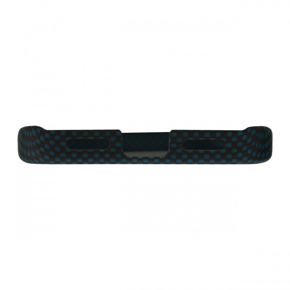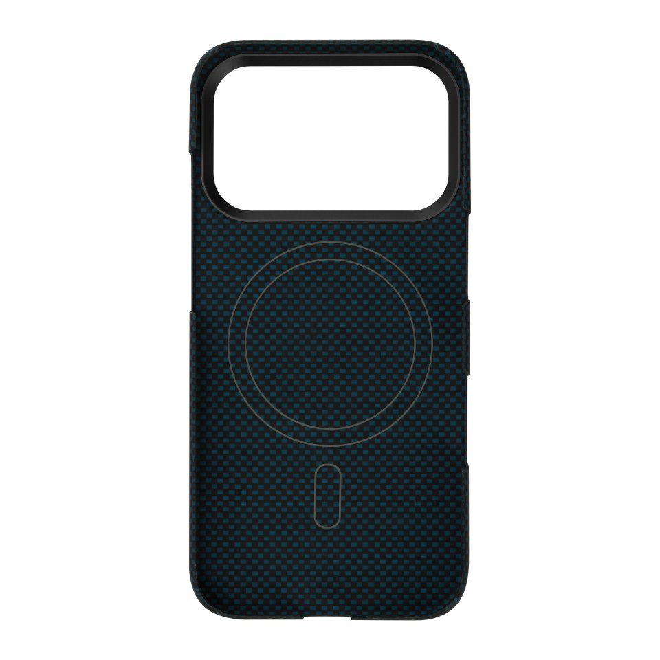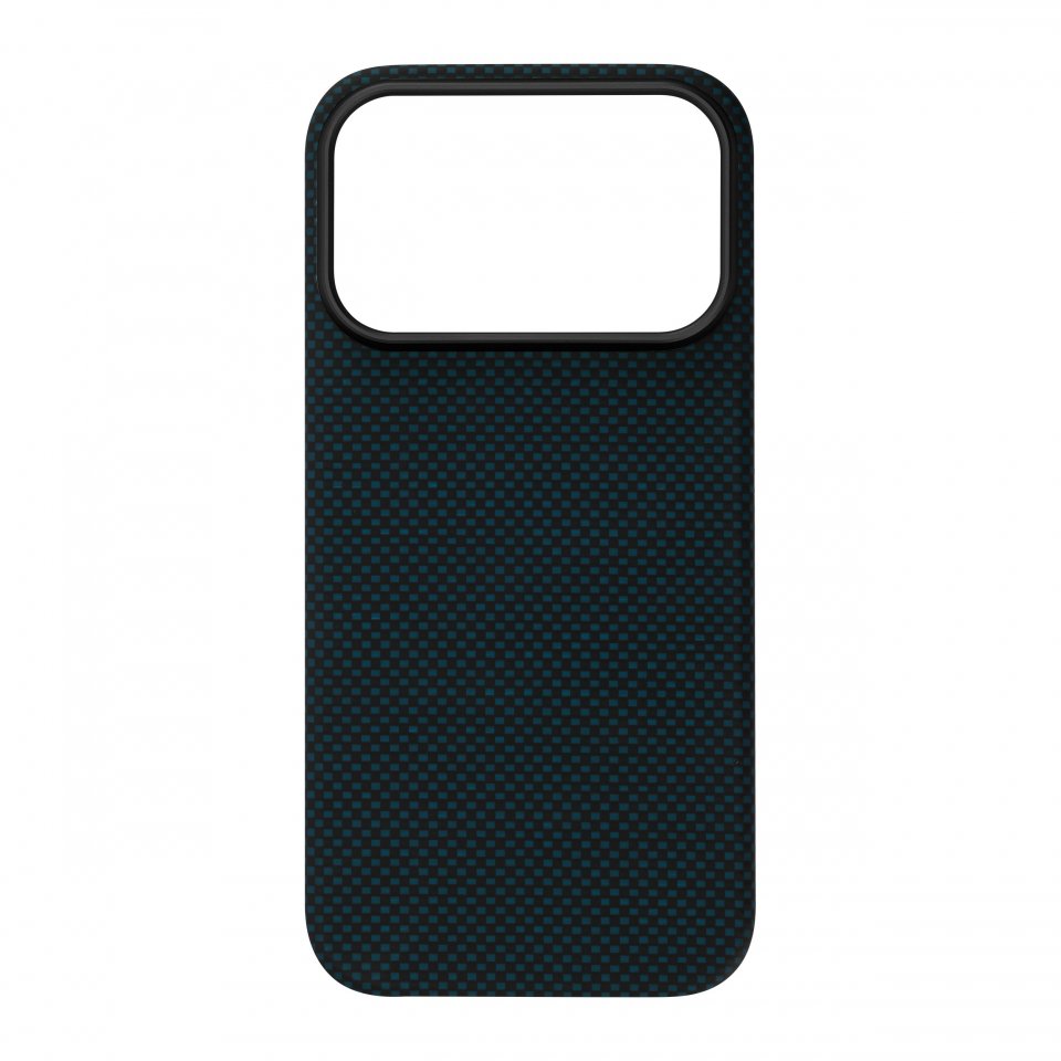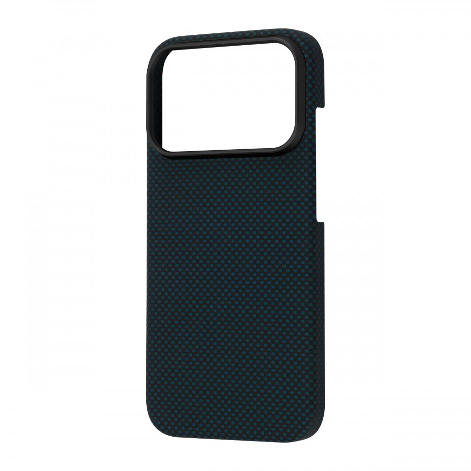 Molemmat materiaalit ovat erittäin kevyitä, mutta samalla vahvoja, joten kuori ei lisää puhelimeen turhaa painoa, vaan tarjoaa silti tehokasta suojaa. Sininen Vectran ja musta Kevlar kietoutuvat toisiinsa tarkasti kudotussa rakenteessa, jossa kuidut risteävät toistensa yli ja ali muodostaen rytmikkään, lähes kolmiulotteisen pinnan. Kuori tuntuu kädessä napakalta, mutta miellyttävältä, ja sen hienovaraisesti teksturoitu pinta tarjoaa erinomaisen pidon ilman liiallista karheutta.